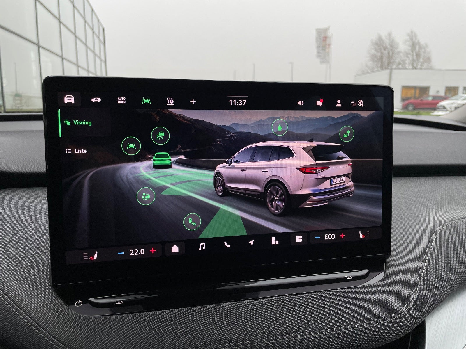 , kørecomputer, digitalt cockpit, bagagerumsdækken, multifunktionsrat, læderrat, delkunstlæderindtræk, højdejust. førersæde, højdejust. forsæder, justerbar lændestøtte, integrerede rullegardiner, ambiente belysning, alufælge, 19" alufælge, el-sidespejle, el-sidespejle m/varme, el-klapbare sidespejle, el-klapbare sidespejle m/varme, led kørelys, fuld led forlygter, led baglygter, tagræling, mørktonede ruder i bag, automatgear, varme i rat, aircondition, fuldaut. klima, 2 zone klima, 3 zone klima, elektrisk kabinevarmer, motorkabinevarmer, varmepumpe, centrallås, fjernb. centrallås, nøglefri adgang, nøglefri tænding, fartpilot, adaptiv fartpilot, adaptiv fartpilot med kø-assistent, aut. nedbl. bakspejl, udv. temp. måler, sædevarme, el-ruder, 4x el-ruder, elektrisk parkeringsbremse, trådløs mobilopladning, manuel forvarmning af batteri, automatisk forvarmning af batteri, type-2 ladekabel, app integration, dab+ radio, navigation, håndfrit til mobil, musikstreaming via bluetooth, android auto, apple carplay, usb-c tilslutning, alarm, regnsensor, bakkamera, parkeringssensor (bag), parkeringssensor (for), træthedsregistrering, skiltegenkendelse, intelligent hastighedsassistent, isofix, automatisk lys, fjernlysassistent, airbag, esp, vognbaneassistent, blindvinkelsassistent, automatisk nødbremsesystem, stemmebetjening, auto hold, automatisk nødassistent, træk, aftageligt træk
